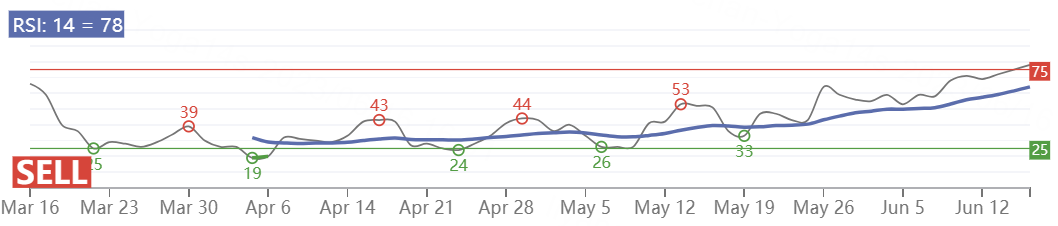 Our recommended stop-loss: $78.04 (-3.44%) (This stock has high daily movements and this gives high risk. The RSI14 is 78 and this increases the risk substantially. There is a buy signal from a pivot bottom found 14 days ago.)