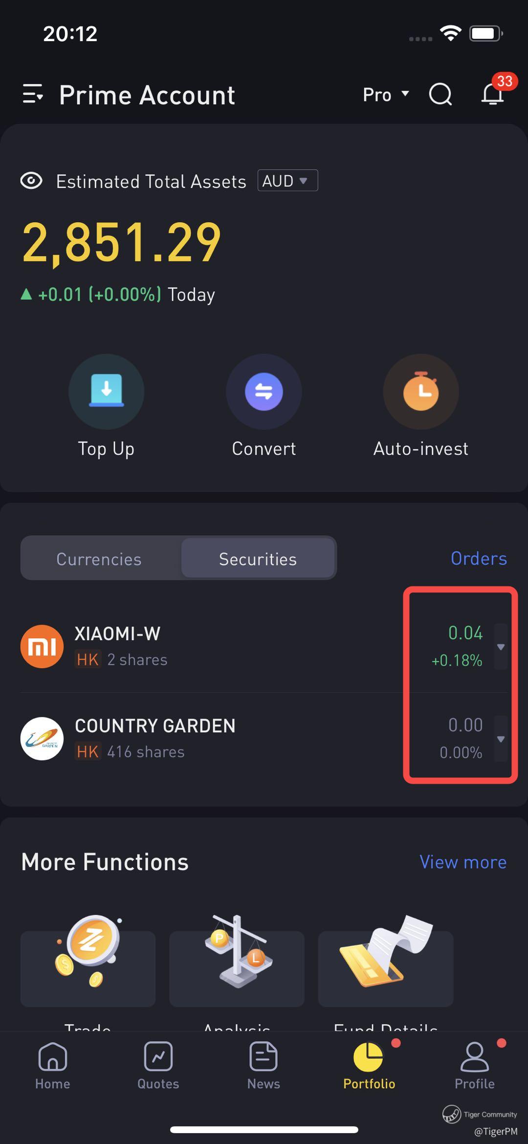Hong Kong users can view and trade HKD MMF through the "Profile-Tiger Vault" function entrance! Auto-Sweep function makes your transaction smooth:Idle cash can be auto-swept into Tiger Vault. The asset value can be used as additional buying power to invest in stocks/options. 1 HKD/USD start invest, 0 fee, high flexibility.