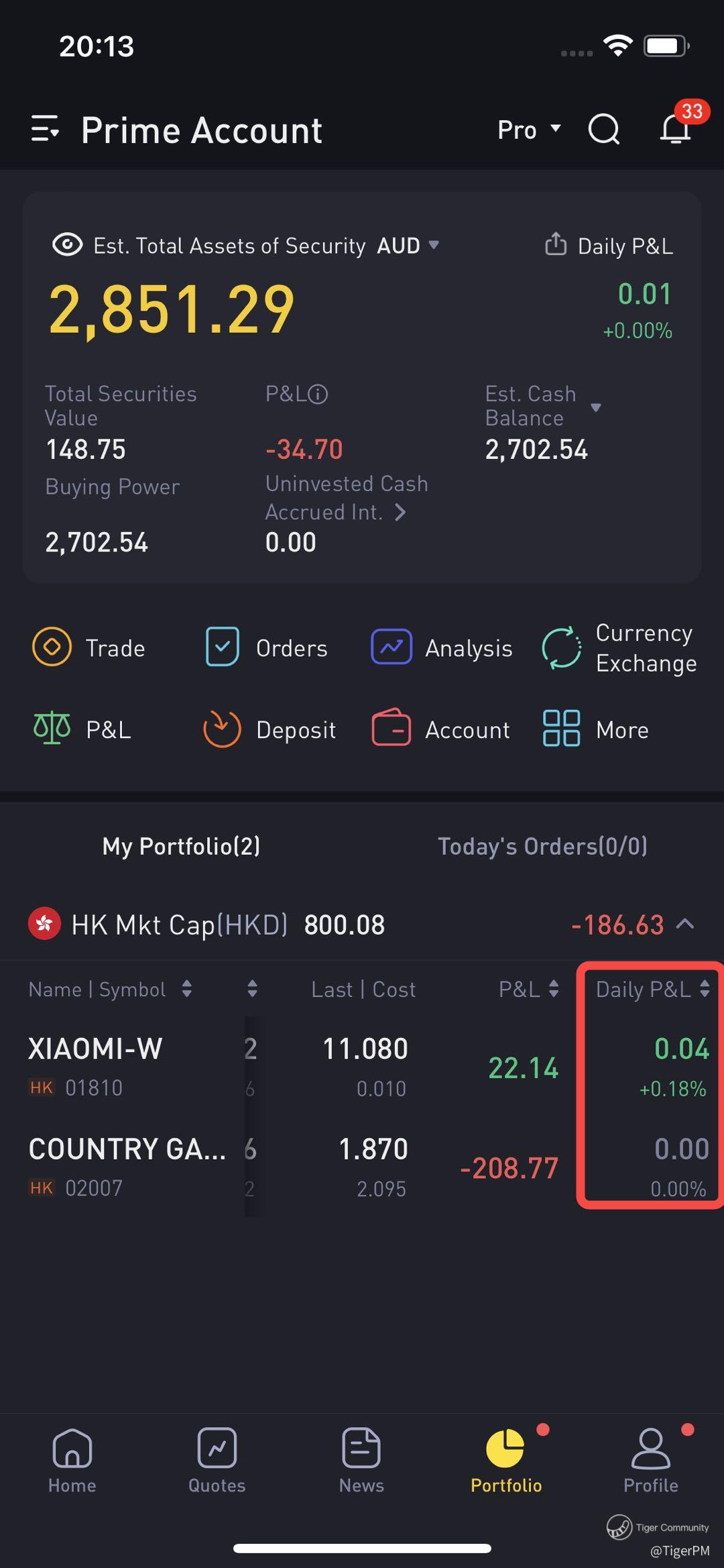 Single positions support displaying Daily P&L Ratio; Hong Kong stock orders support displaying trading Opponent.