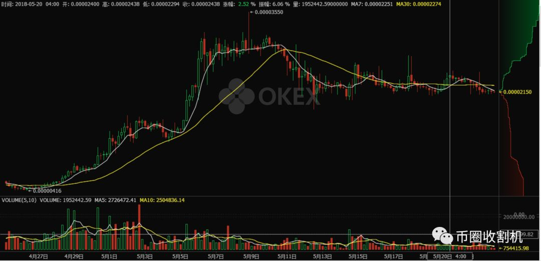 對於這種典型的莊家式的炒作,巨幅拉昇,換手又非常低的幣,前期沒參與到,後面就只能當個觀衆,靜靜看主力表演。