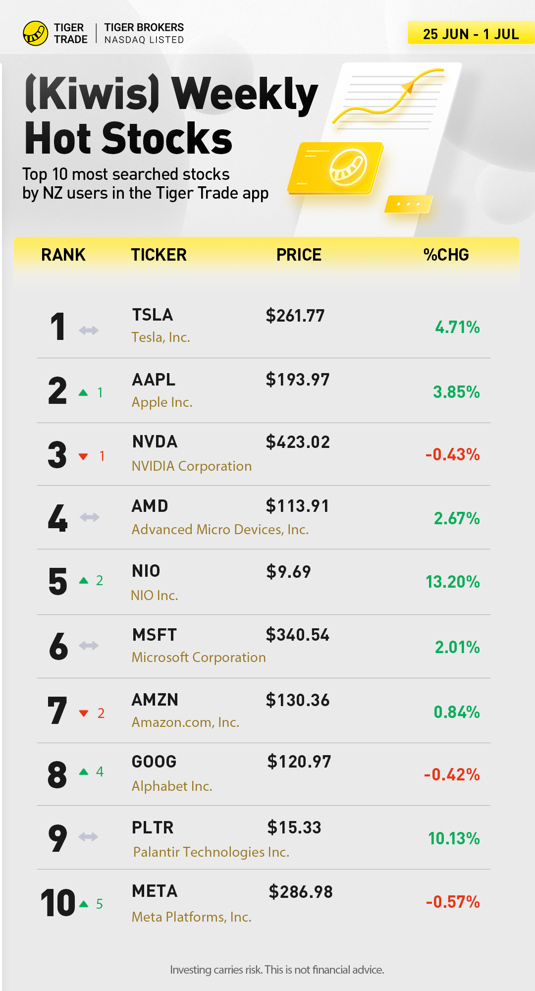 Here I will post the 10 most searched stocks by New Zealand users in the Tiger Trade App every week. Don't miss my updates!!!