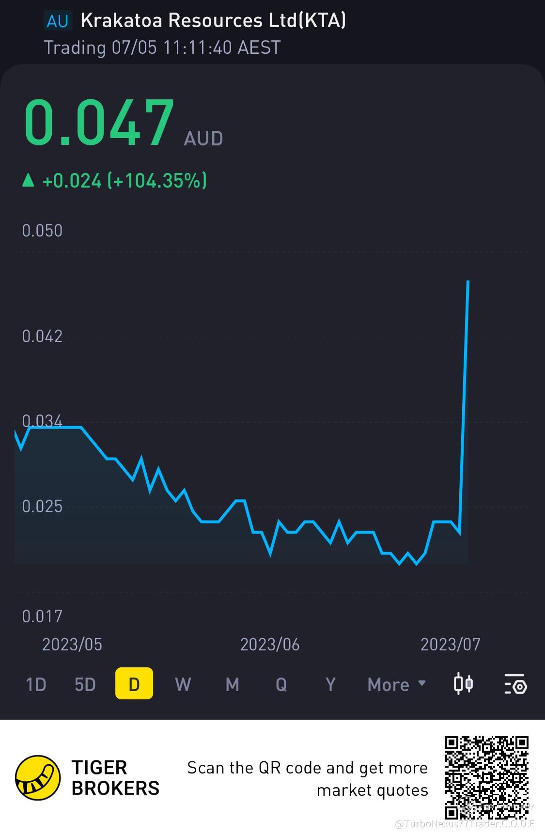 $Krakatoa Resources Ltd(KTA.AU)$ Hi!! It's RALLY ππ₯π₯π₯ company discovered st first phase exploration lithium all above 1% and up to pick 4.2%. Planning has commenced for an imminent RC drilling program at new discovered area to extend along the strike and Result will be available imminently. Proce expectation hit over 100% within week. Check FRS:ASX announces and discovery. Since KTA discovered a new area with impressive outstanding lithium this provided a real indication that price will sky rocket ASAP up to 500% 5x times fold! Watch me RALLYππ₯β¬οΈ