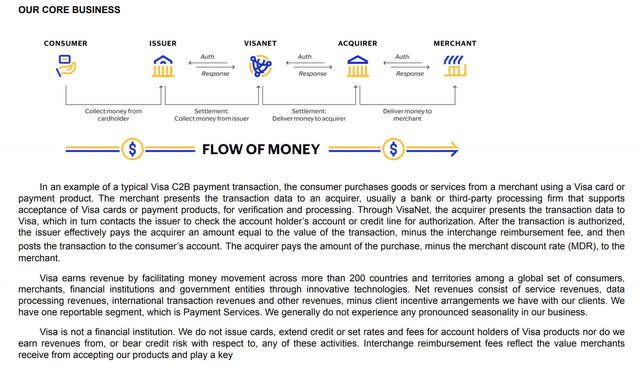 The total consumer debt balance cuts both ways. Increases can mean more revenue for payment networks as their products touch each terminal or checkout button. The higher the mountain, the greater the fall. If a dreaded recession does happen and rates can't make up for bad, uncollectible debts, all involved will be touched. Luckily Visa and Mastercard operate in providing transaction processing services. Here is a well-laid-out description of the payment network business from the MRFY Visa 10-K: