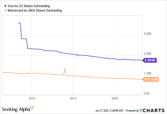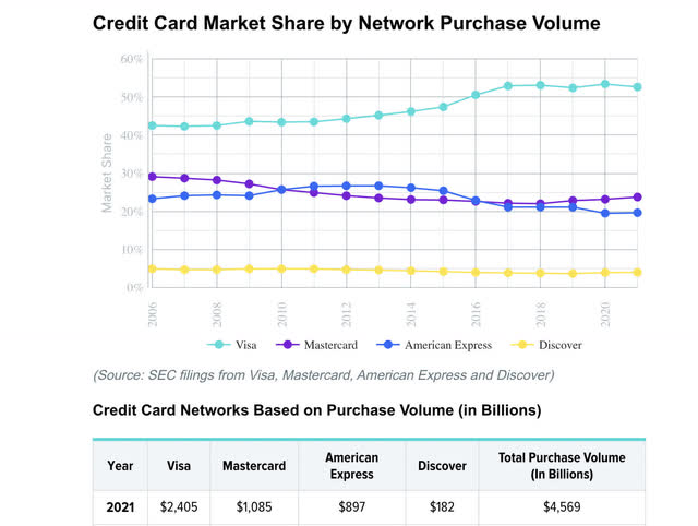 Visa is still the largest US credit card network. Mastercard has traded at a premium for some time due to its higher returns on equity and returns on invested capital.