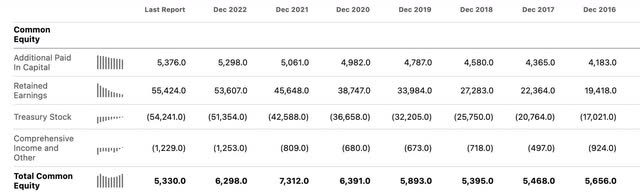 Interesting. Although Mastercard has a higher ROIC, Visa has the higher profit margins by a decent amount. The share buybacks without retirement decrease Mastercard's equity capital base. Visa does not have treasury stock, therefore not creating the contra-asset. Basically, two different accounting practices, let's observe: