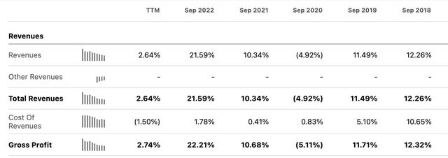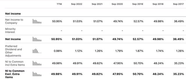 Looking at the top line, Mastercard has an 5 year average trailing annual growth rate of 12.874%. Visa's average 5 year annual top-line growth is a bit weaker at 10.15%. The compound annual growth rate for Visa's top line is 7.3% over this period and Mastercard's 8.25%.