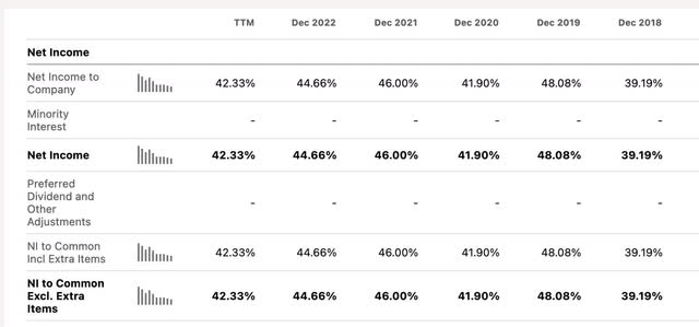 That being said, Visa is still the largest US credit card network. Mastercard has traded at a premium for some time due to its higher returns on equity and returns on invested capital. It appears a large part of that is due to accounting practice differences between Visa and Mastercard. Mastercard reduces its' equity capital base by not retiring shares. In this case, I prefer to look at margins versus returns on capital. If both used the same accounting for buybacks, the ROIC chasm would not be as large.