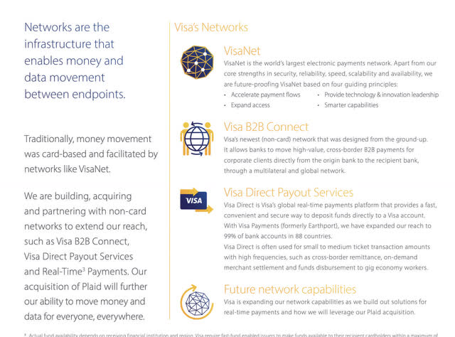We are accelerating the migration to digital payments and continue to evolve to be a "network of networks" to enable the movement of money through all available networks. We aim to provide a single connection point so that Visa clients can enable money movement for businesses, governments and consumers, regardless of which network is used to start or complete the transaction. This ultimately helps to unify a complex payments ecosystem.