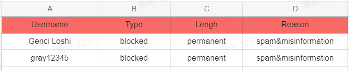 List of Banned Users in the Tiger Community (7, July)