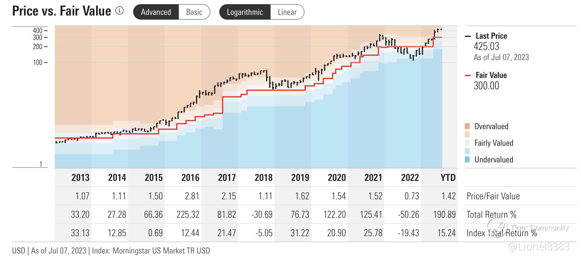 One example is Nvidia, which was undervalued by around 45% around October last year. Morningstar had a fair value of $200 for the shares of Nvidia. Indeed, after their previous quarter results, Morningstar had revised the fair value to $300, which assumes a fiscal 2024 (year ending January 2024) adjusted price/earnings ratio of 37 times. But the stock price is now currently trading at a premium of 42%.