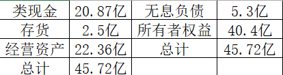 可以說,這張資產負債表太驚豔了,沒有任何對外借款,可以認爲負債爲0。公司的資產一半是現金,存貨只夠賣3星期。