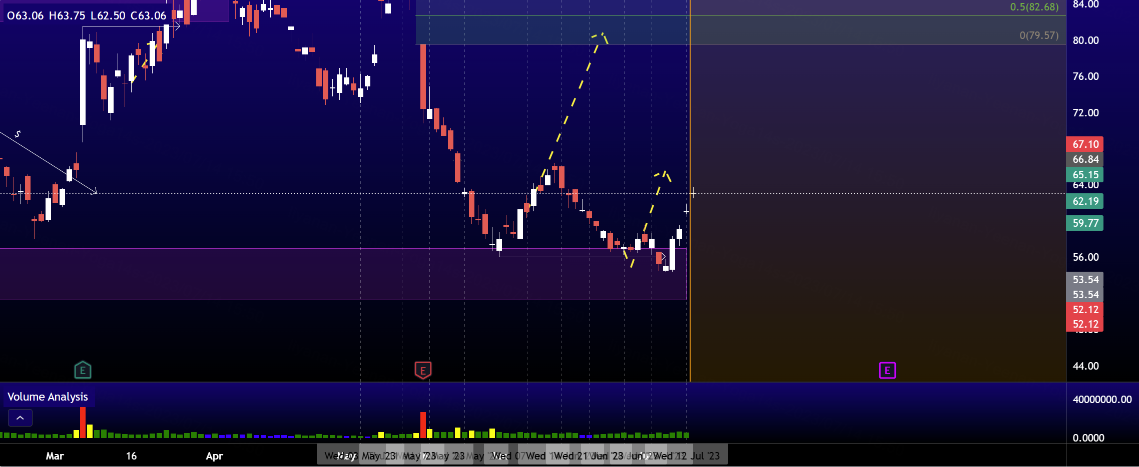 Price played out nicely according to my previous analysis. No changes to my expectations. Price has giving a confirmation on the lower timeframe. Price should be ready to rally. Potential target for this up move is to target the fair value gap at 82.68.
