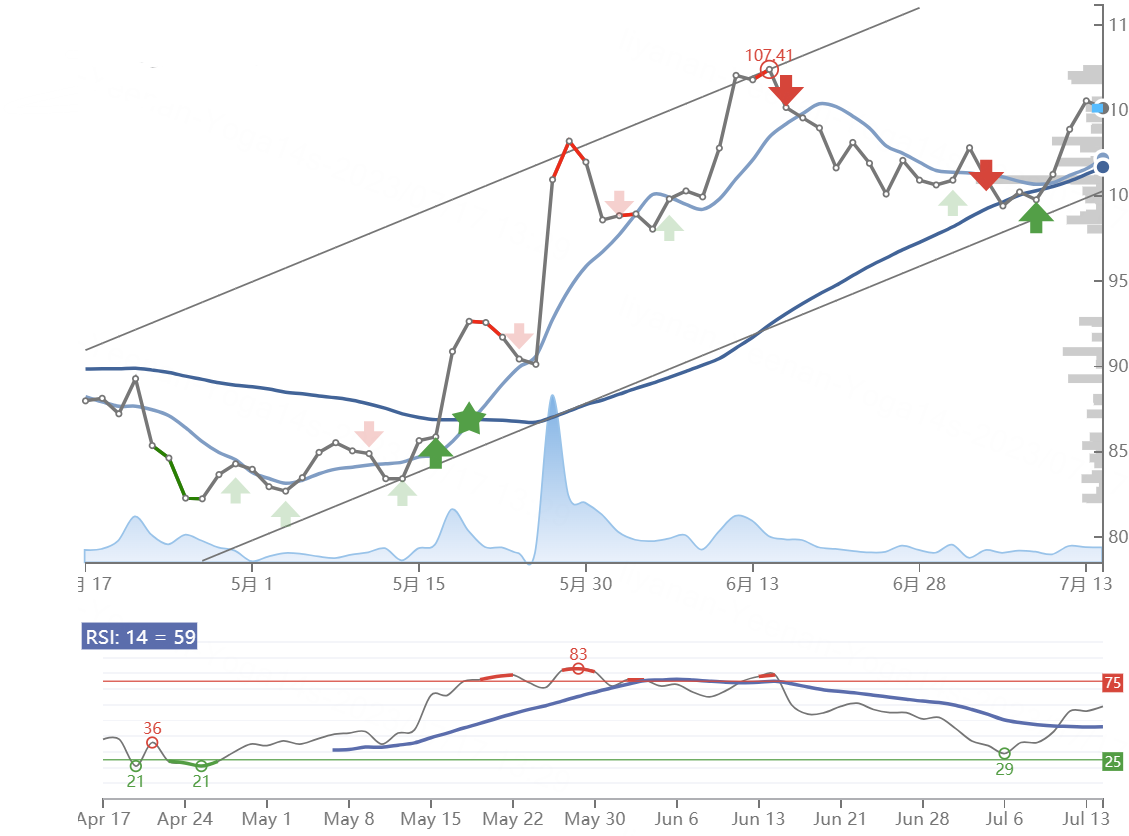 The Taiwan Semiconductor $Taiwan Semiconductor Manufacturing(TSM)$ stock price fell by -0.407% on Friday, 14th Jul 2023 from $105.57 to $105.14. During the last trading day the stock fluctuated 2.32% from a day low at $104.86 to a day high of $107.30. The price has risen in 6 of the last 10 days and is up by 4.47% over the past 2 weeks. Volume fell on the last day along with the stock, which is actually a good sign as volume should follow the stock. On the last day, the trading volume fell by -9 thousand shares and in total, 9 million shares were bought and sold for approximately $949.11 million.