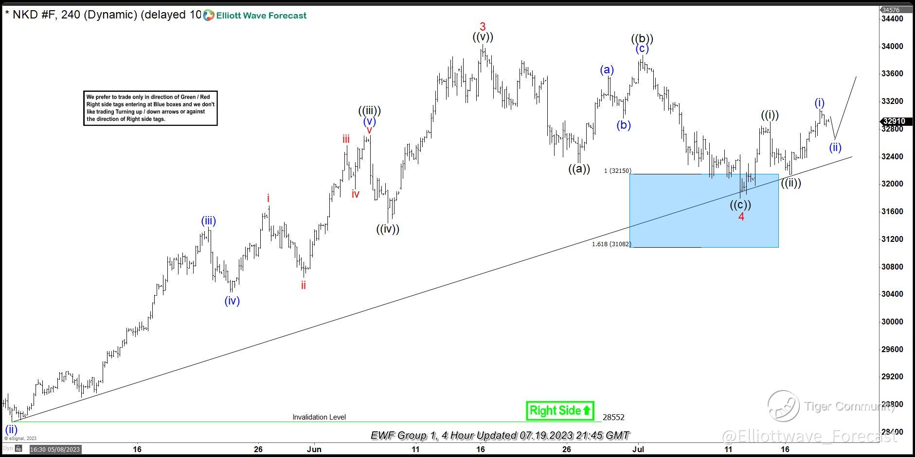In this article we’re going to take a quick look at the Elliott Wave charts of NIKKEI published in members area of the website. As our members know NIKKEI is showing impulsive bullish sequences that are calling for a further strength. Recently we got a 3 waves pull back that has ended right at the Blue Box zone (our buying area) . In the further text we are going to explain the Elliott Wave Forecast and trading setup.