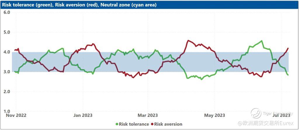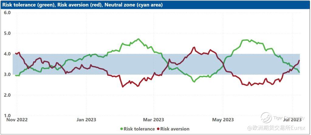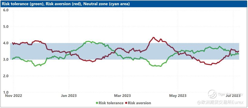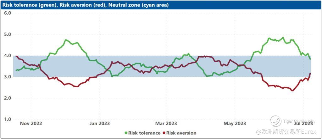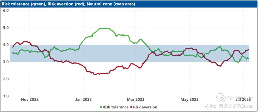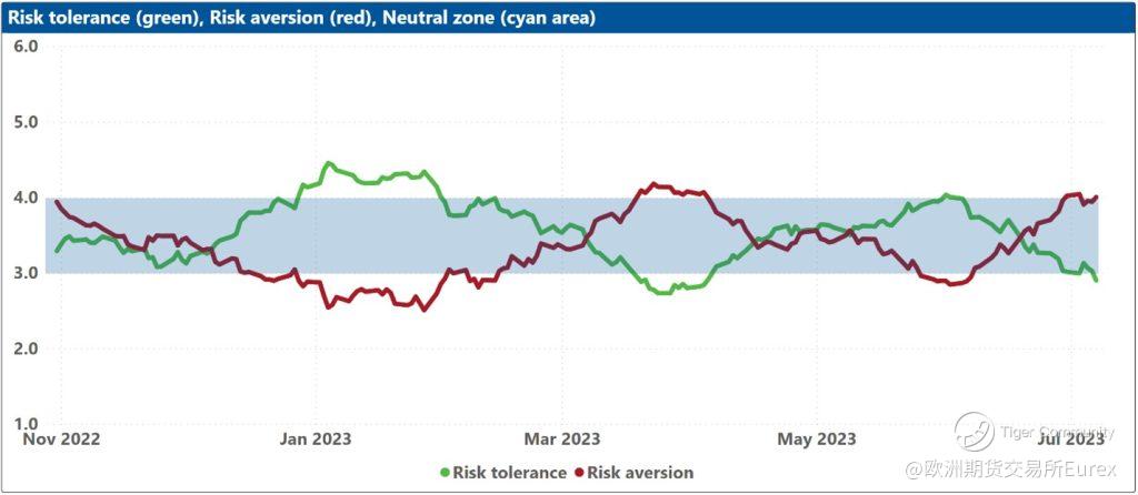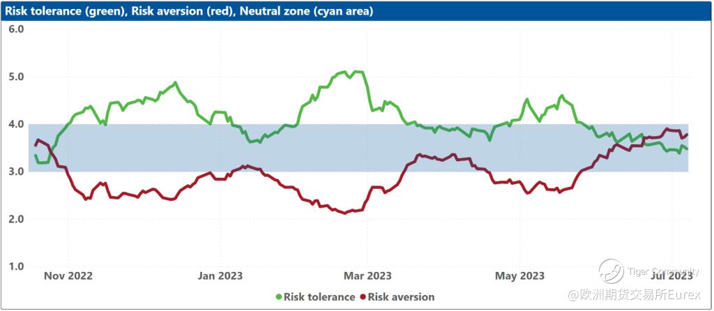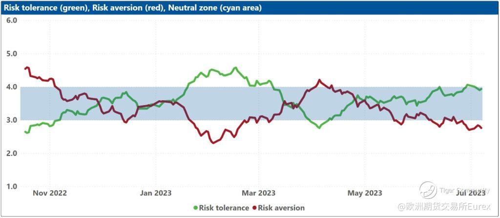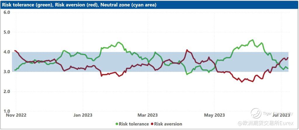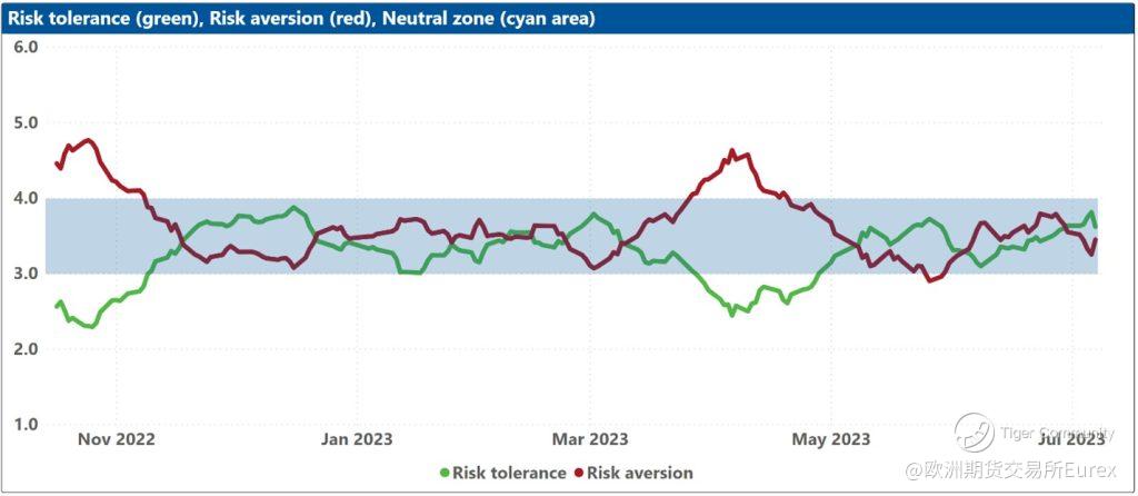 The blue shaded zone between levels 3-4 for both indicators represents a reasonable balance between the supply and demand for risk in the market. Conversely, when both lines are outside of this blue zone, the large imbalance in the demand and supply for risk can lead to an overreaction to unexpected news or risk events.