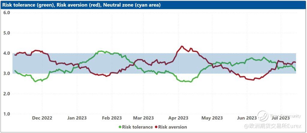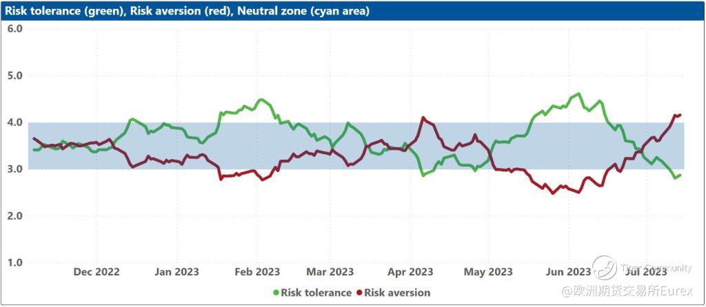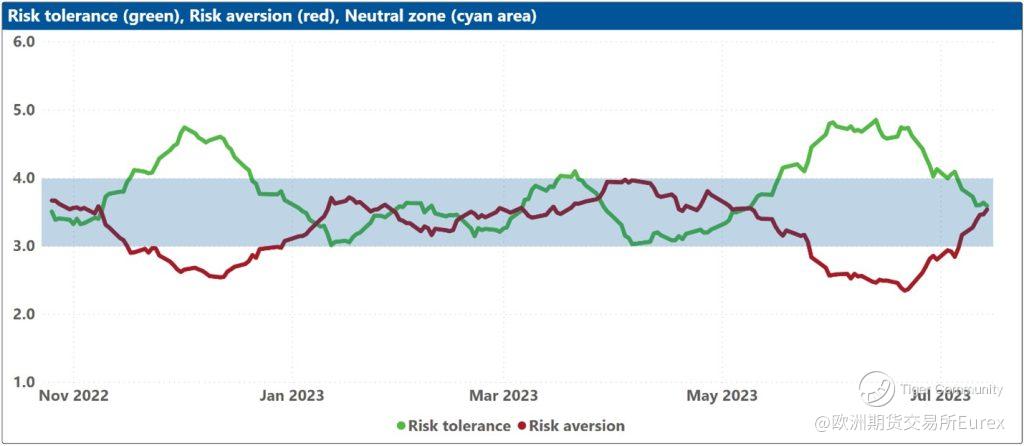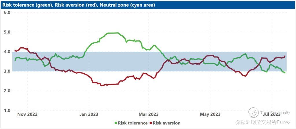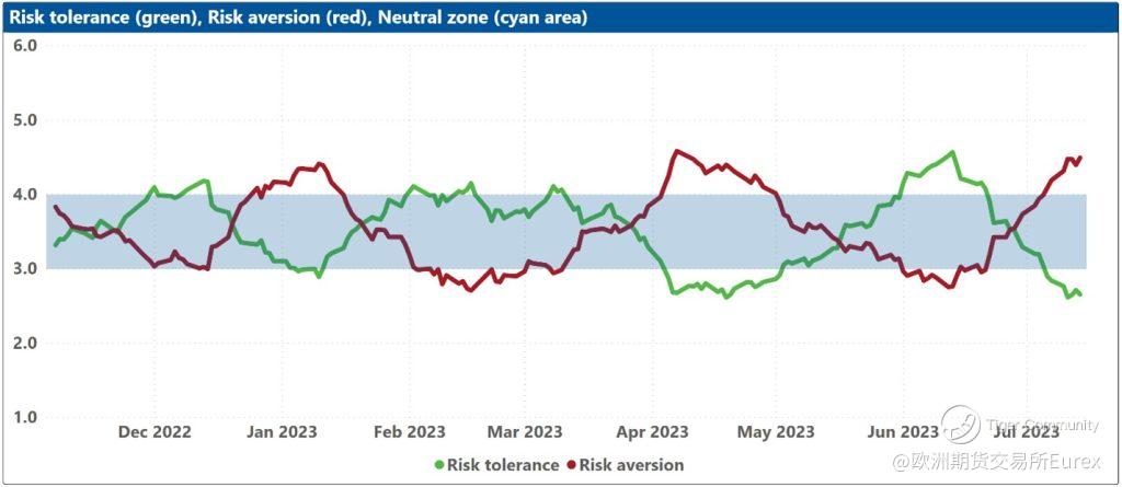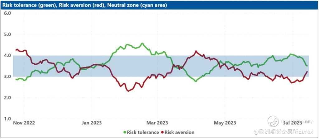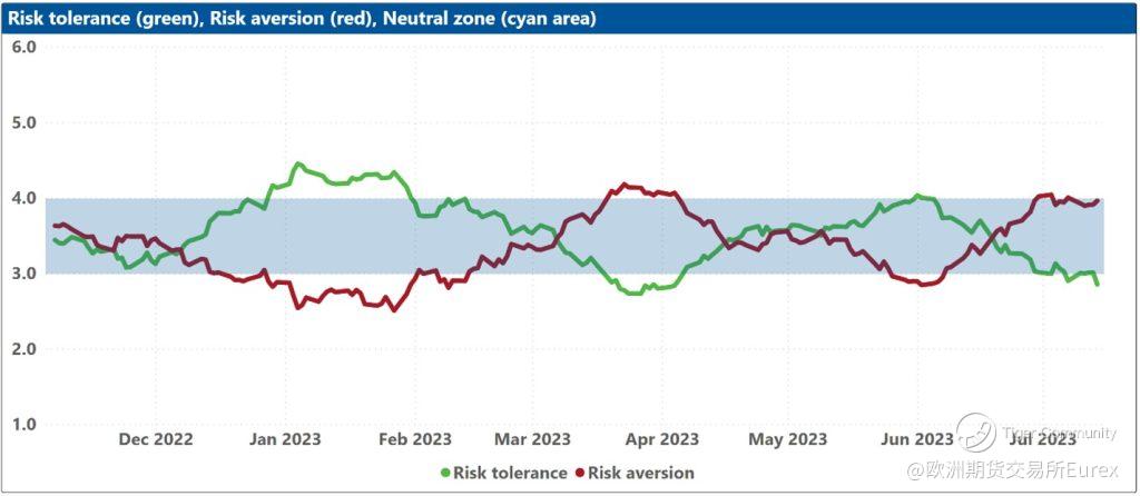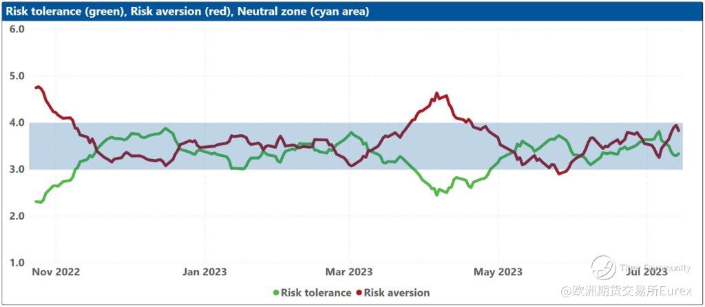 The blue shaded zone between levels 3-4 for both indicators represents a reasonable balance between the supply and demand for risk in the market. Conversely, when both lines are outside of this blue zone, the large imbalance in the demand and supply for risk can lead to an overreaction to unexpected news or risk events.