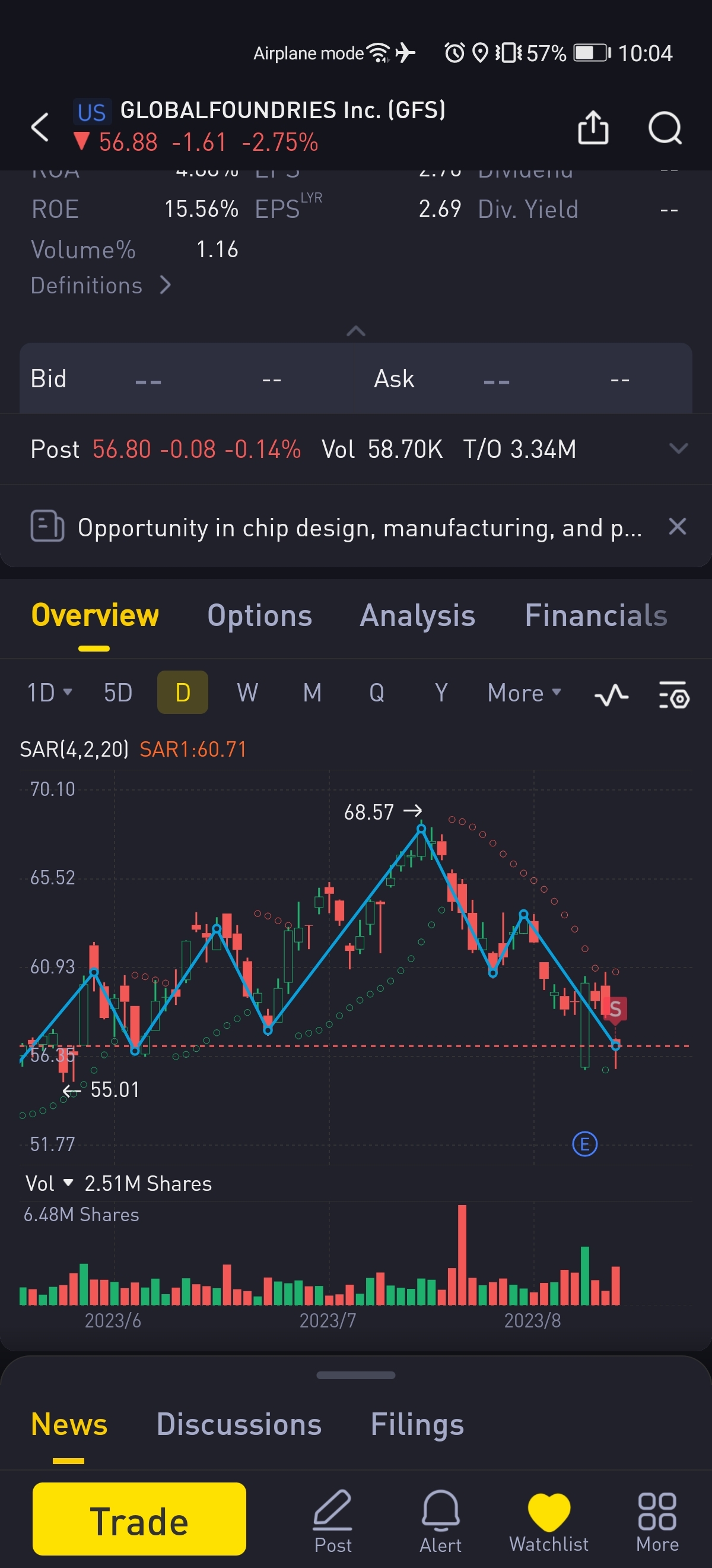 Ps: I have sell put 55 at the same date. I am likely to be assigned it by the seller when gfs hit 53 or 52 soon.