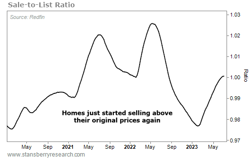 That frenzy subsided last year. The Fed turned off the easy-money spigot to tackle runaway inflation. But now, fortunes are reversing yet again... And if this trend keeps up, we could soon enter another boom in home prices.