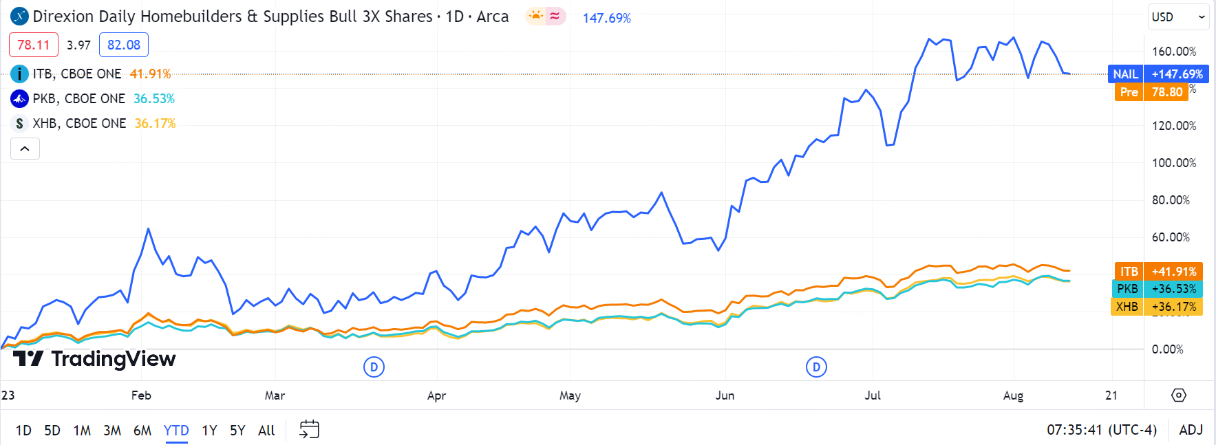 ETFs like $SPDR S&P Homebuilders ETF(XHB)$ $iShares U.S. Home Construction ETF(ITB)$ $Invesco Dynamic Building & Construction ETF(PKB)$ $Direxion Daily Homebuilders & Supplies Bull 3X Shares(NAIL)$ has more potential to go up?