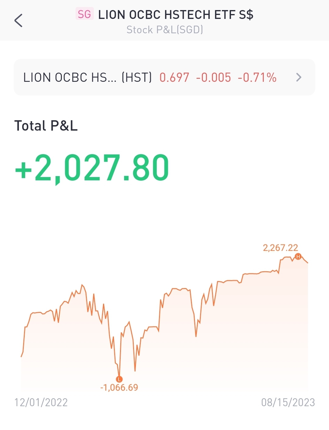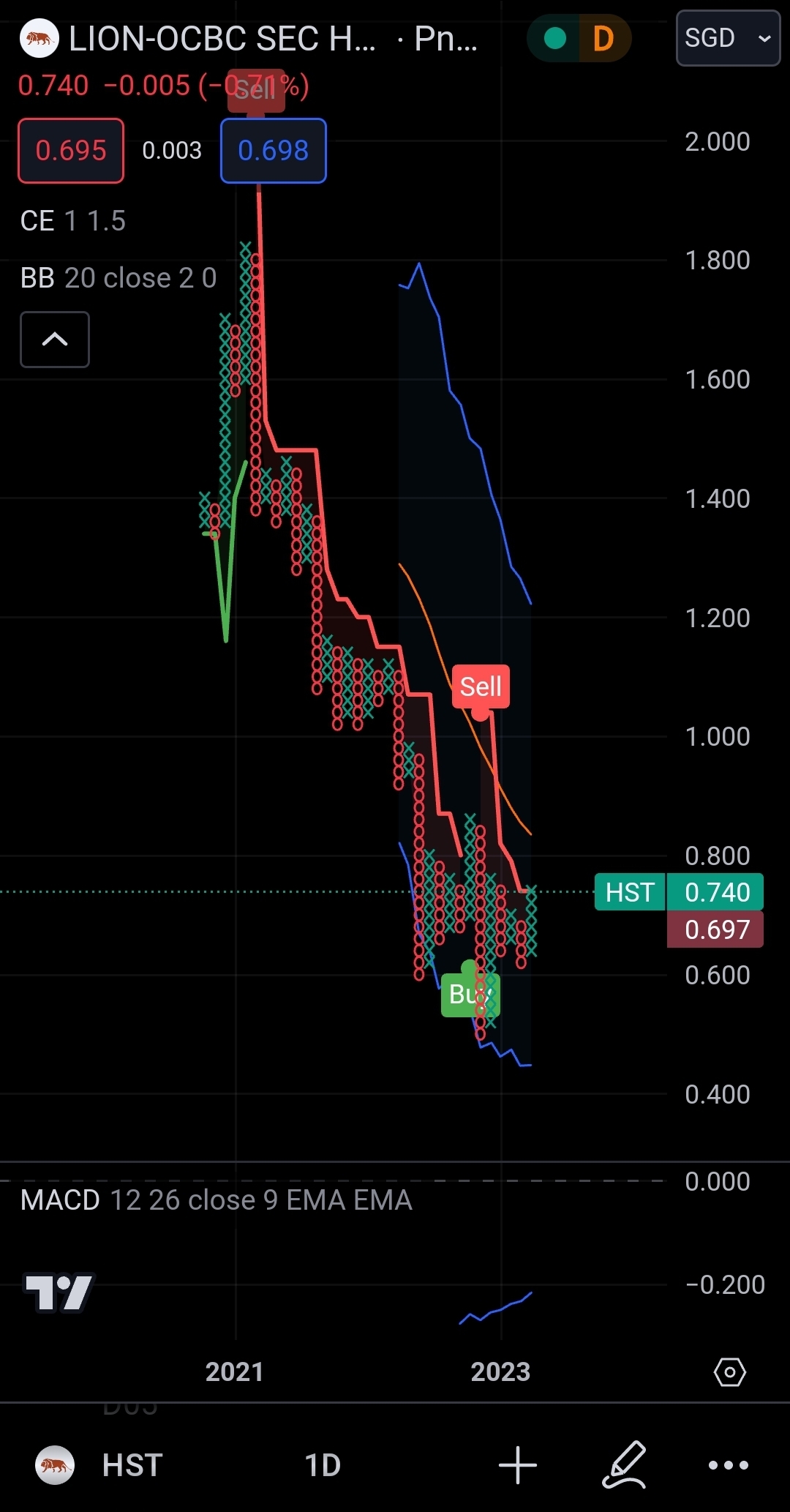 $LION OCBC HSTECH ETF S$(HST.SI)$ pulled back as predicted due to lousy china economic data, country garden crisis and us market pullback due to inflation data. this double whammy caused the hst to return to support zone. as previously mentioned, below 0.7 is good to accumulate as institutional investors will accumulate 6 months prior to market begins trending up. the lousy data is looking at the past. so we have to be forward looking. tourism numbers are up indicating people have spare cash to spend.