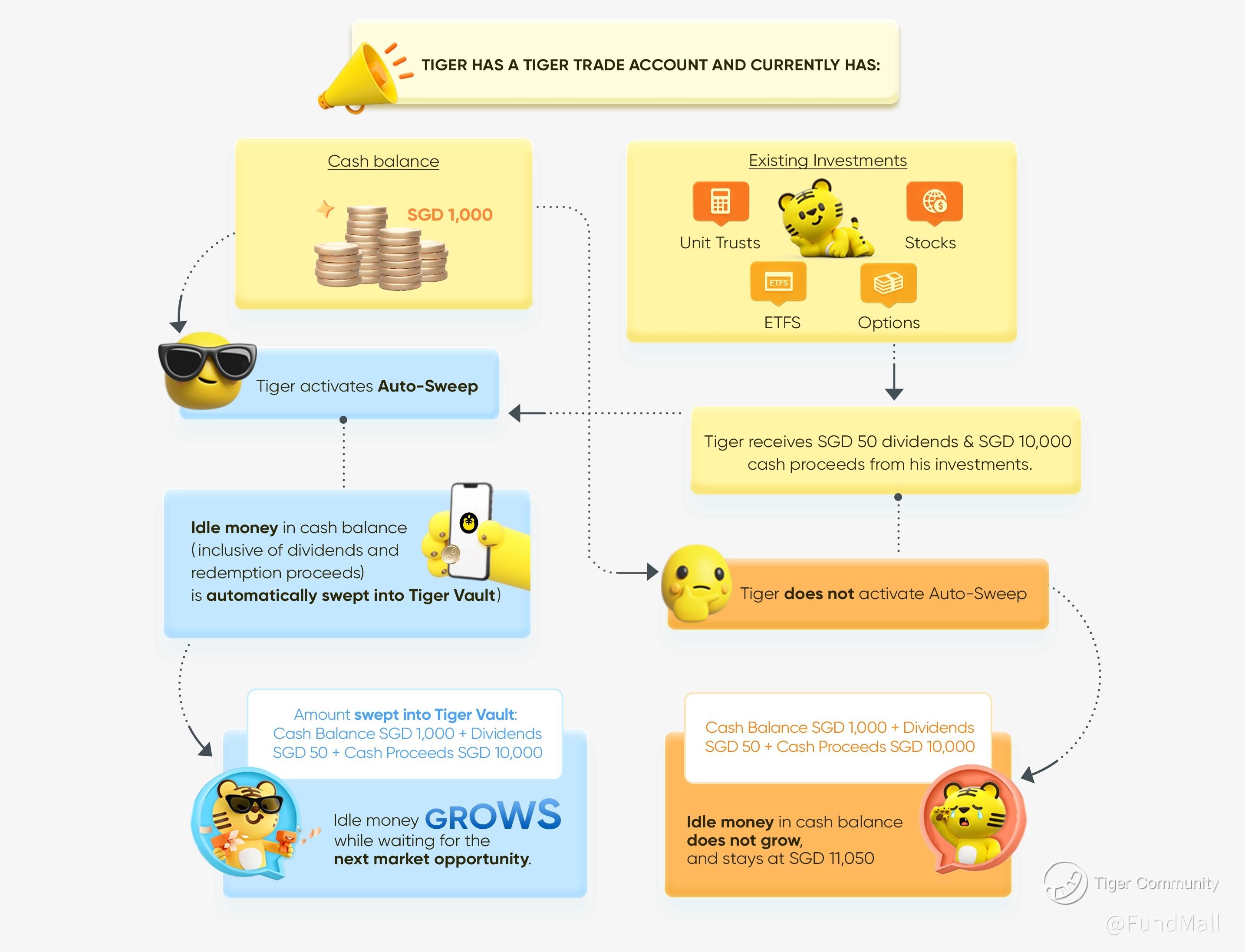Set-up Tiger Vault’s Auto-Sweep, to sweep your unused funds into Tiger Vault automatically, daily! Your idle cash can earn up to *5% p.a!