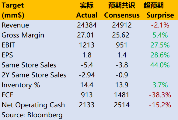 After several turbulent earnings seasons, $Target(TGT)$ showed a reversal trend in its Q2 financial report released yesterday. Despite falling short of revenue expectations, the operational improvements led to profits exceeding the market's forecast.