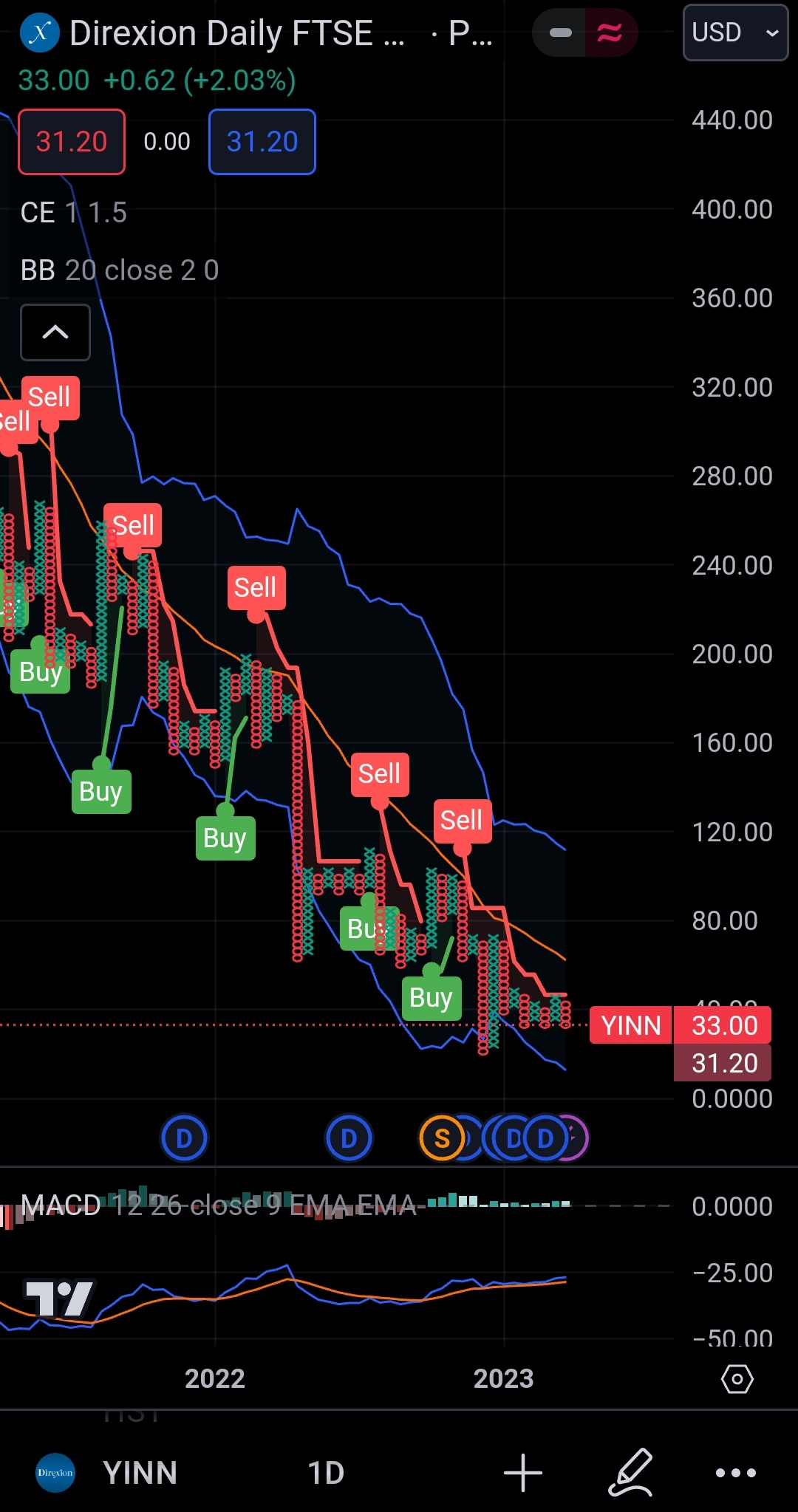 another forward indicator besides the $Hang Seng Tech Index - main 2308(HTImain)$ is the $FTSE China Bull 3X Shares(YINN)$ . there is overnight trading and you can have a few hours ahead to plan for how to trade it. according to yinn pnf, it is at support level. it might break down support level due to the real estate crisis.