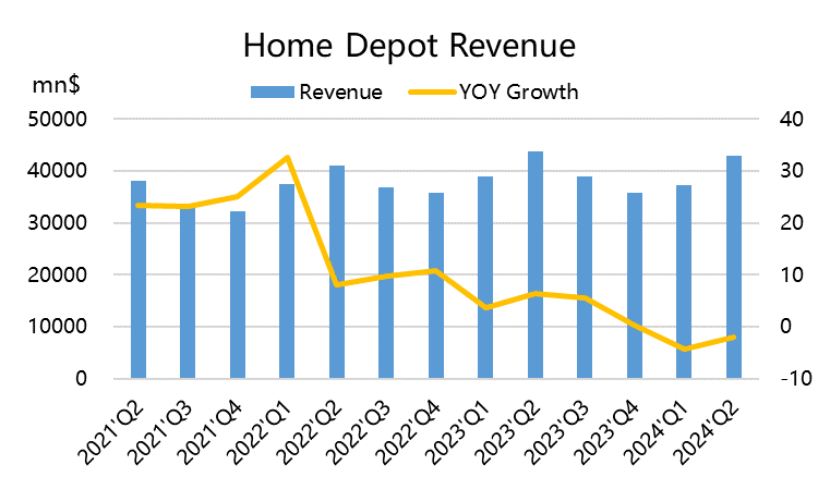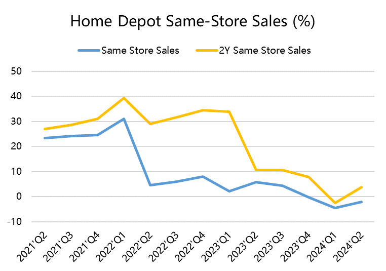 Home Depot also exceeded expectations in its Q2 financial report before, but same-store sales fell by 2.0%, although it exceeded the market's expected -4.1%, it is still a downward trend for the industry as a whole.