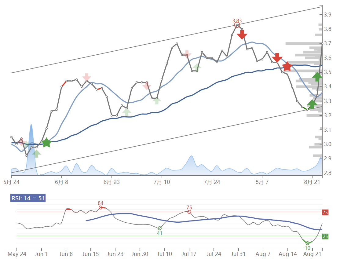 The Grab Holdings Limited $Grab Holdings(GRAB)$ stock price gained 10.78% on Wednesday, 23rd Aug 2023, rising from $3.34 to $3.70. It has now gained 3 days in a row. It will be exciting to see whether it manages to continue gaining or take a minor break for the next few days. During the last trading day the stock fluctuated 7.90% from a day low at $3.48 to a day high of $3.76. The price has fallen in 6 of the last 10 days but is still up by 3.64% over the past 2 weeks. Volume has increased on the last day along with the price, which is a positive technical sign, and, in total, 19 million more shares were traded than the day before. In total, 44 million shares were bought and sold for approximately $162.79 million.