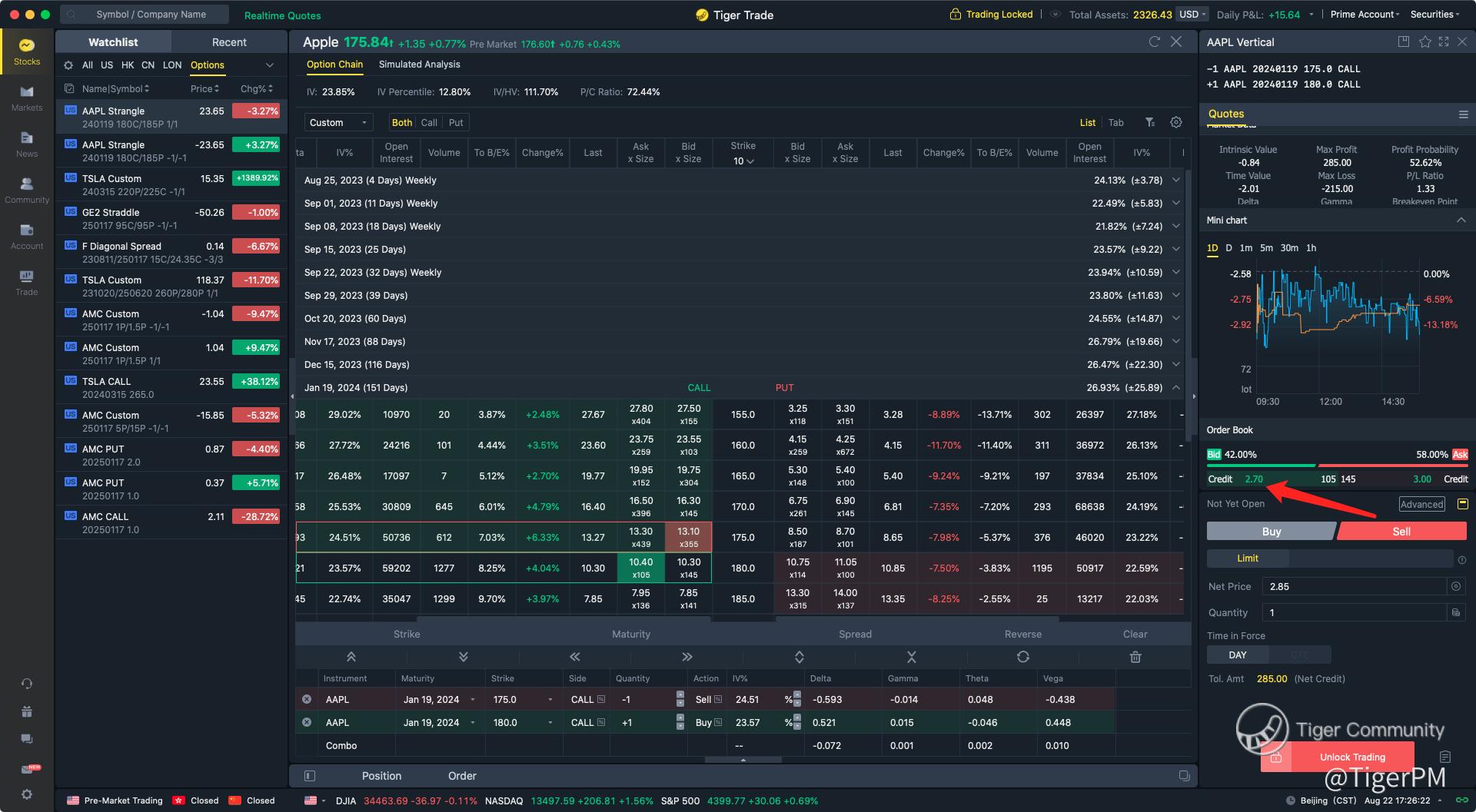 1.[Hot] Newly added option combo chart and option combo watchlist