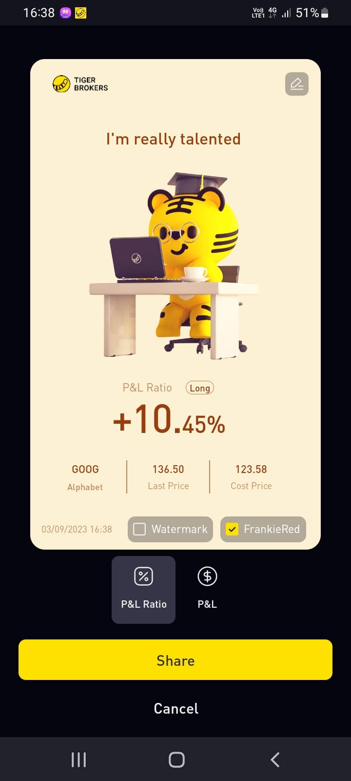 When you want to start to invest on stock market, you need to ensure that the amount of money for the stock investment is not emergency fund. It is your extra cash that will not be in used for at least the next 2-3 years. Then, you can feel more calm and comfortable to invest this money into the stock market. I had invested in so many years, I also cannot guarantee that every share that I invested will sure earn money. I share my 2 photos for your reference. However, I can share with you that the company that you intended to invest need to be well known like Google. I invested few years ago with the losses, but keep for long term and it can recover to profit. But not every share will recover as you expected. Just invest the share that the company is having good financial report and his product is well recognised. Please do your own diligent research/study of the company background before you start to buy that company share. Give me a like if you support my article. @zetora420 @jace0777 @Ketsara @Brian Tycangco 鄭彥渊 @JinHan @CherryPang @Fongtf @MalcolmEmily @Derren_Tan @LMSunshine
