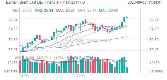 On Monday, driven by expectations of production cuts, $Brent Last Day Financial - main 2311(BZmain)$ surged to $88.90, while $WTI Crude Oil - main 2310(CLmain)$ reached their highest intraday level since November of last year.