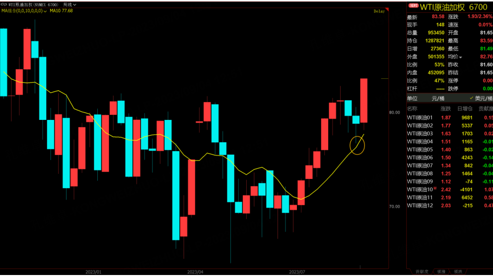 The oil price finally broke through the upper chord of the range of $82, and the trend was relatively strong on the basis of OPEC's continuous extension of production reduction. Since the oil price has broken through and there is no extra negative fundamentals, we should follow the trend and make a good stop loss.