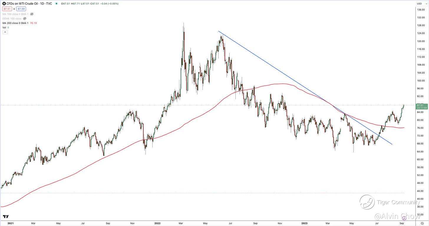 Since the beginning of July, the WTI Crude Oil price has surged by 25%, and given the ongoing production cuts, there is a possibility that oil prices may continue to rise.
