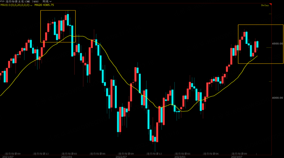 At the same time, above the 20-week moving average, the trend of the US stock index is similar to the top trend in early 2022. In the case of slowing down the rising speed, we can rely on the 20-week moving average and take this trend as a reference to design short-term trading strategies, so that the trade will be more profitable than a single direction.