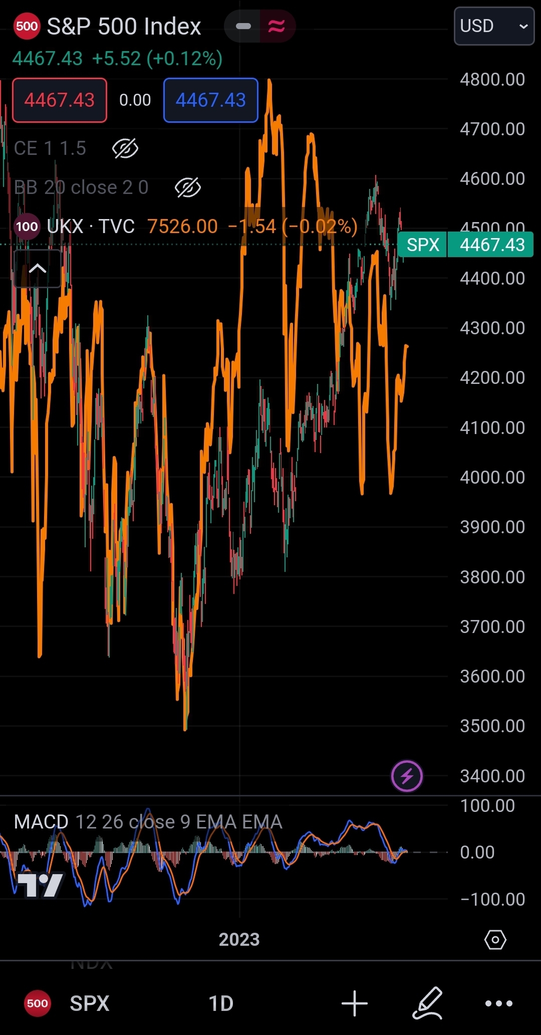 $SPDR S&P 500 ETF Trust(SPY)$ is likely headed for correction. $FTSE 100(.UKX.UK)$ is a leading indicator of $S&P 500(.SPX)$ . you can look at the chart of spx candlestick compared with ukx orange line. ukx made a new high long before spx made a new high. ukx is on a downtrend after making a new high. spx will follow ukx's trend until ukx decides to change trend.