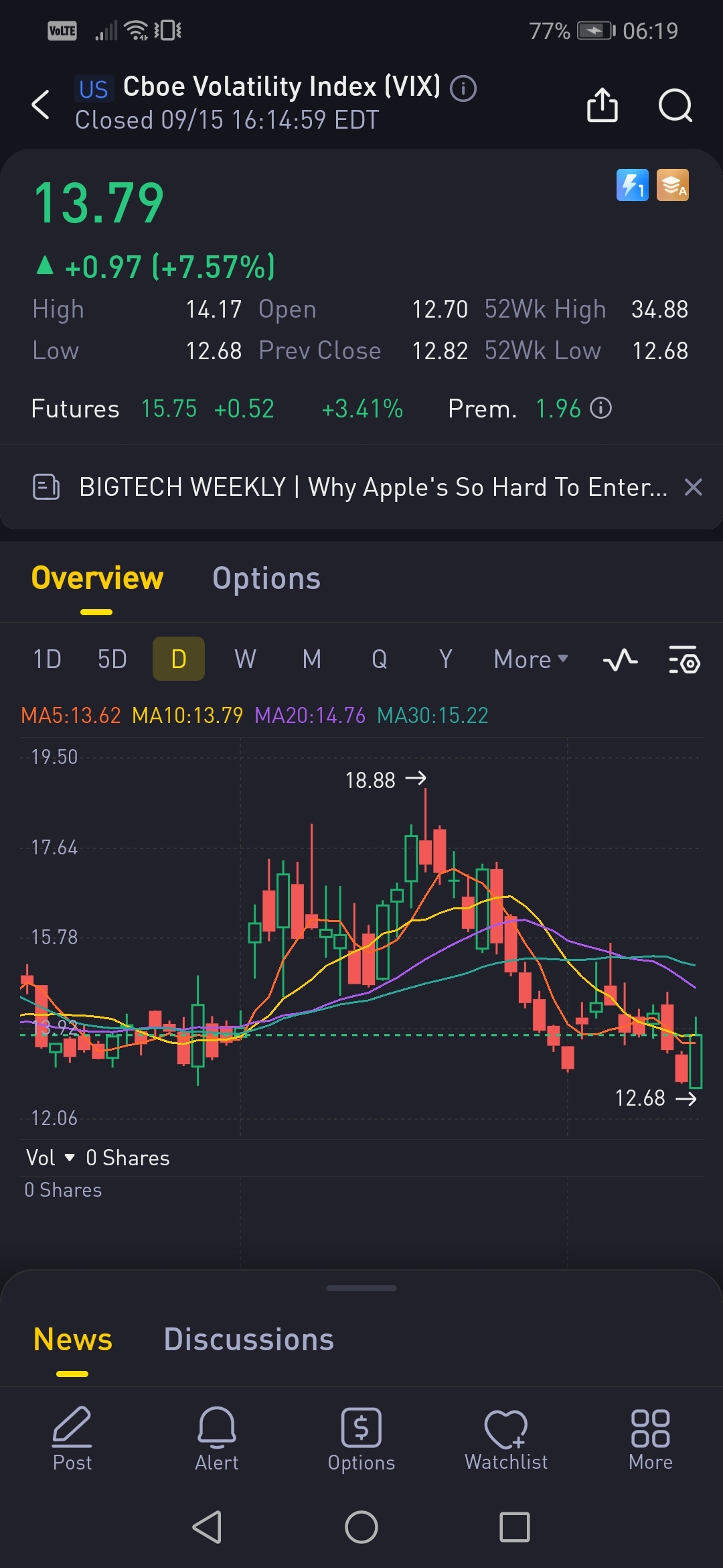 πππStocks fell today in the US largely due to a drop in Big Tech Stocks. VIX, the Fear index jumped 7%, rising off its lowest level since January 2020.