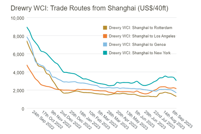 When we covered ZIM back in April, our thesis was mainly focused on the robustness of the EU and U.S. retail sales and a belief that freight rates were on the verge of rebounding from their lows in Q1 2023. In addition, we anticipated a significant increase in demand following the drop in mid-2022, which we did not truly see.