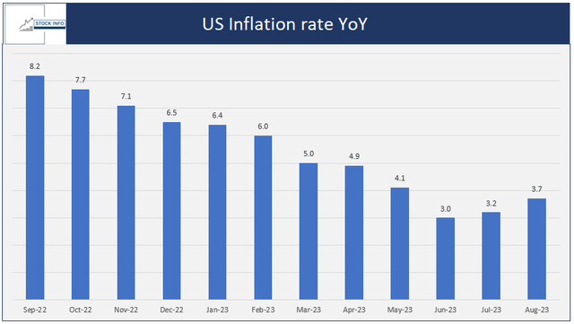Another worry for ZIM investors is that the inflation rate in the US has started to pick up once again, as it has done in June and August, which can be seen in the chart below.