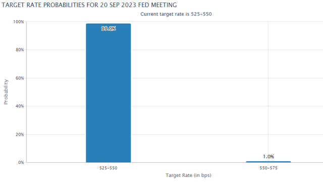 If we look at the market expectations for a hike at the next FED meeting on September 20th, there is an overwhelming belief that the FED will continue to keep the current rates rather than hike.
