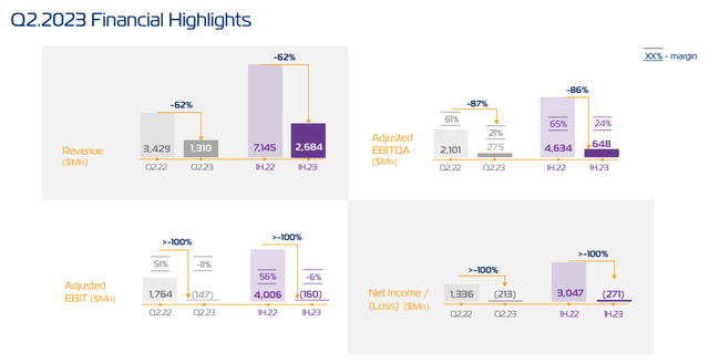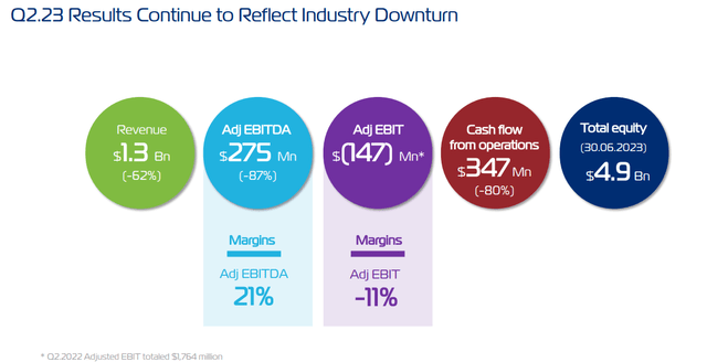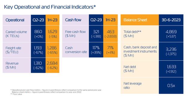 Overall, ZIM's H1 2023 performance reflects the poor spot freight rates paid on the market in 2023 thus far. Despite these financial challenges, ZIM generated $520M in net cash, but its liquidity declined by almost $1.4B from $4.6 billion as of December 31, 2022, to $3.2 billion as of June 30, 2023.