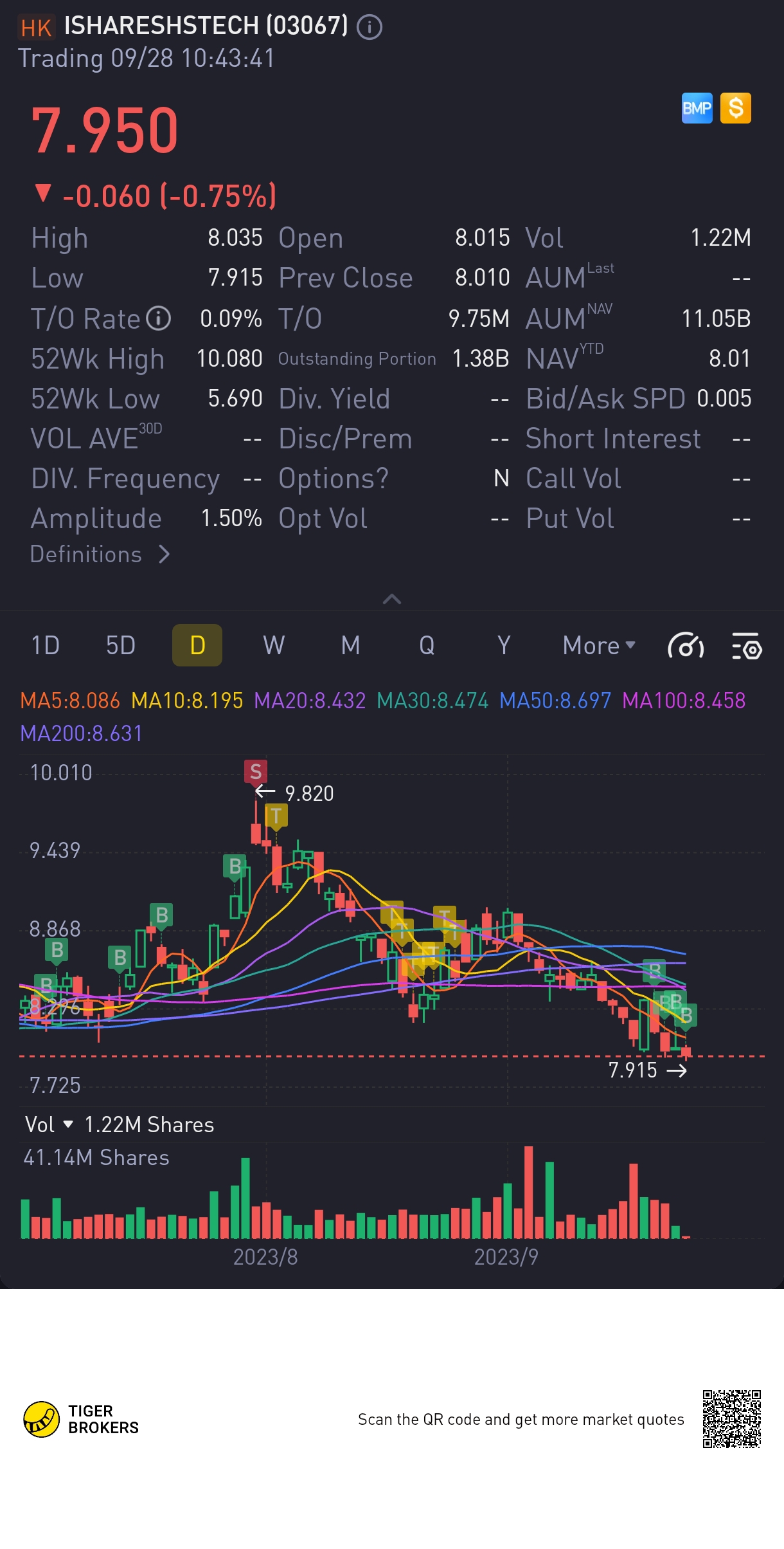 $ISHARESHSTECH(03067)$ $Tiger Brokers(TIGR)$ $Tencent(00700)$ $XIAOMI-W(01810)$ after selling my hang Seng tech etf at the near term peak one plus to 2 months back, I am reinitiating a position in hang Seng tech etf. Yes I am not the best at picking reversal but at this price, I am comfortable...