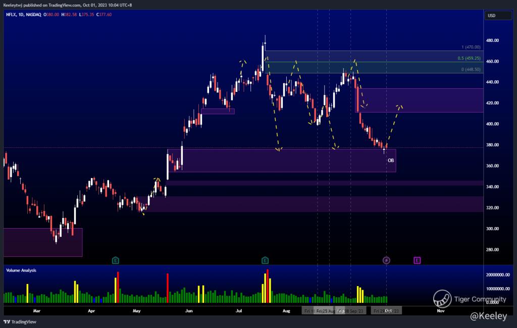 Price playing nicely to my last analysis. Price missed the 50% FVG at 459.25 be a little and proceeded to dump. My expectation was for price to hit the bullish OB at 375.87. This has happened last week, giving us a -16.19% move to the downside since my last analysis. From here, I'd wait for a confirmation for price to move back up to the premium level, potentially to fill the imbalance created at 411.39.