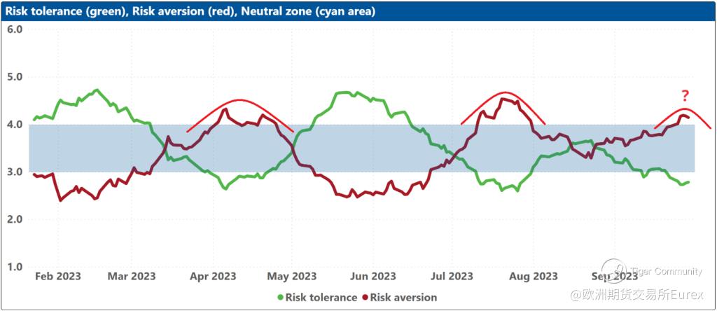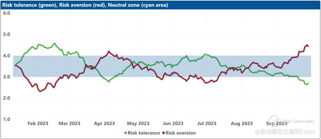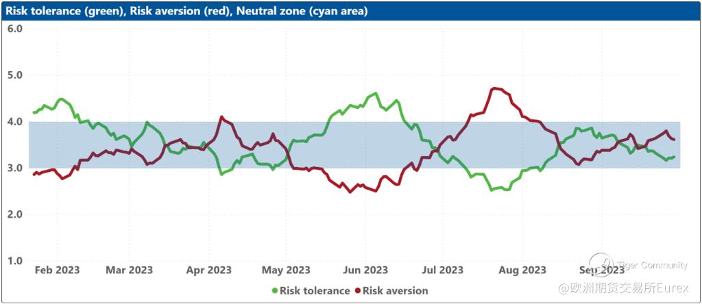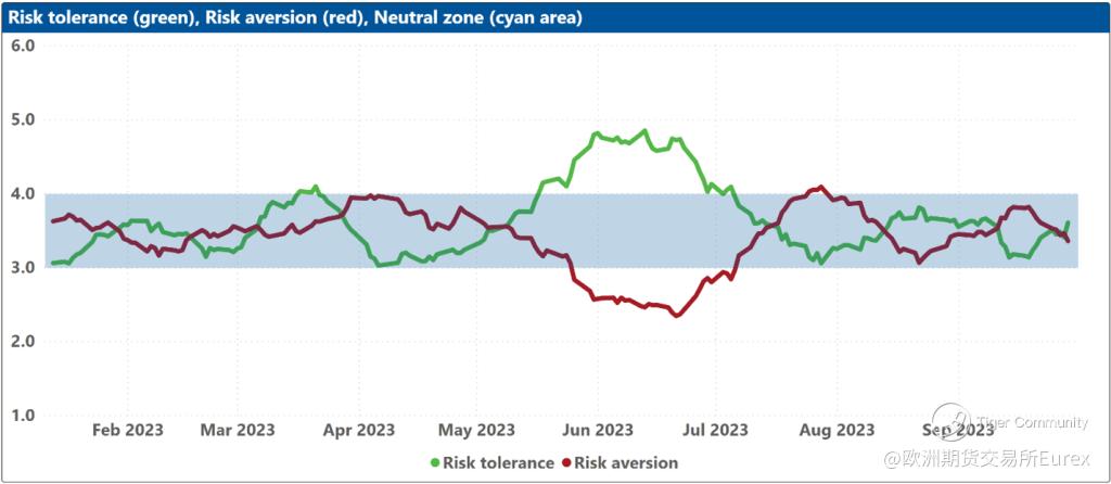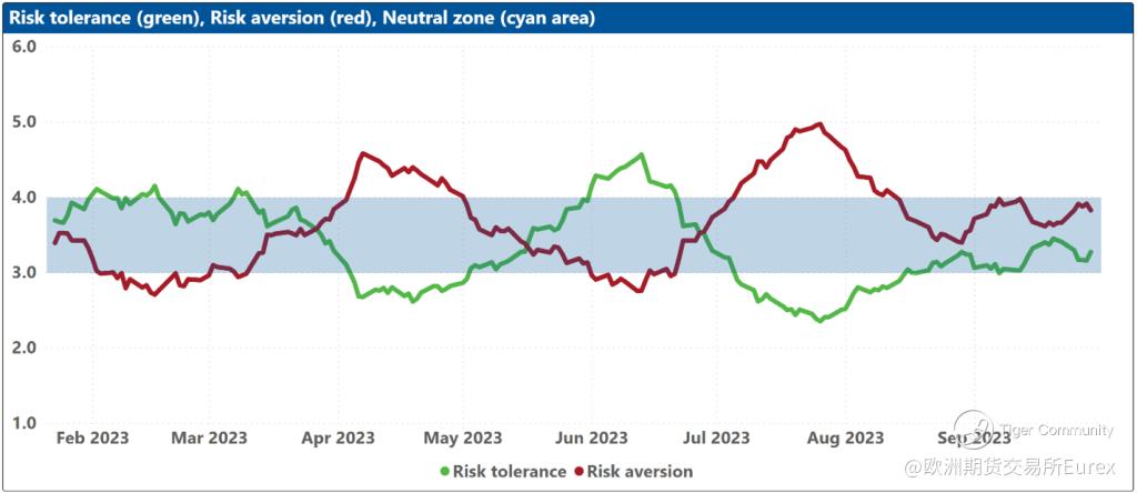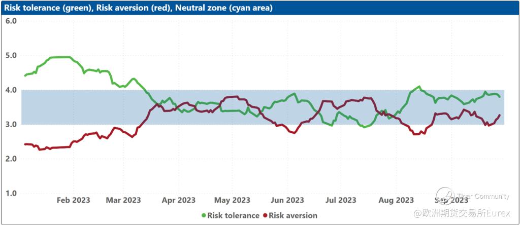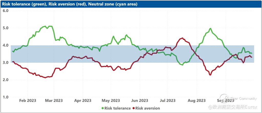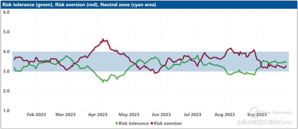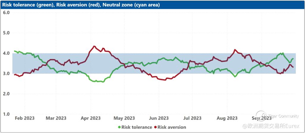 The blue shaded zone between levels 3-4 for both indicators, represents a reasonable balance between the supply and demand for risk in the market. Conversely, when both lines are outside of this blue zone, the large imbalance in the demand and supply for risk can lead to an overreaction to unexpected news or risk events.