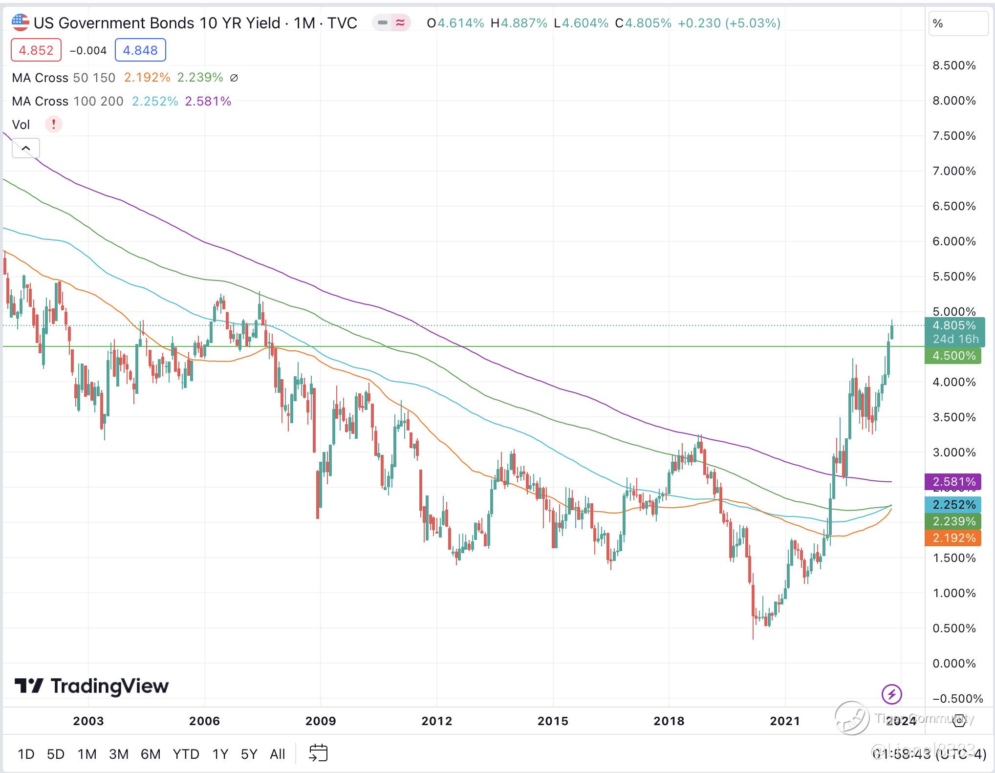 The last time the U.S. 10 Year Treasury topped 4.5% was in August 2007