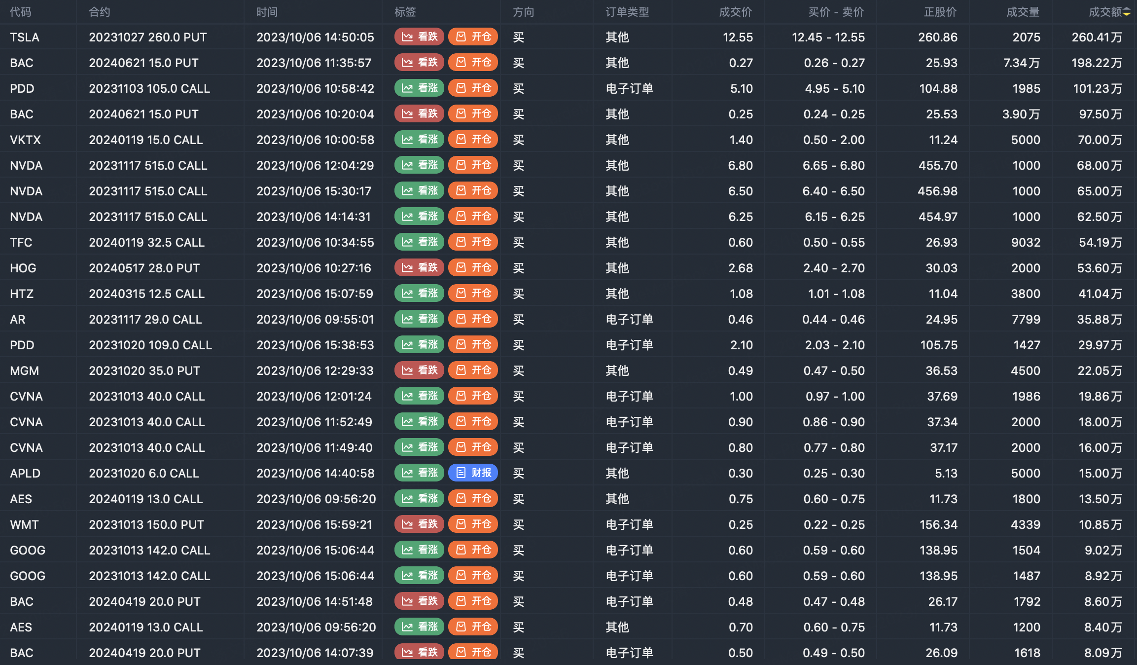 Note: This image data is from Tiger PC. This screening is a significant buy open position for options contracts in the market. The purchase of a call option means that the trader believes that the underlying has upward momentum, and the purchase of a put option means that the trader believes that the underlying has downward momentum. These contract openings typically indicate significant activity in the underlying stock, including whether the trader is willing to accumulate a long or short option position.