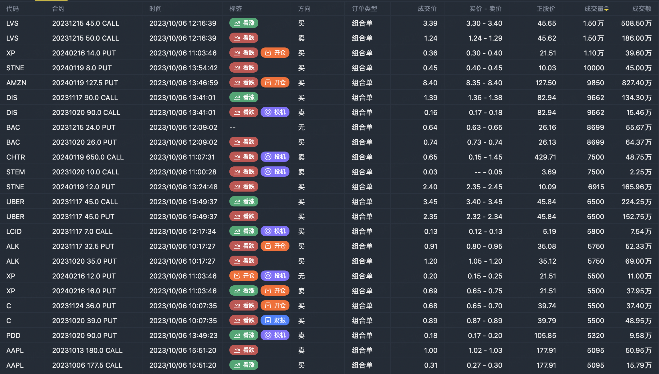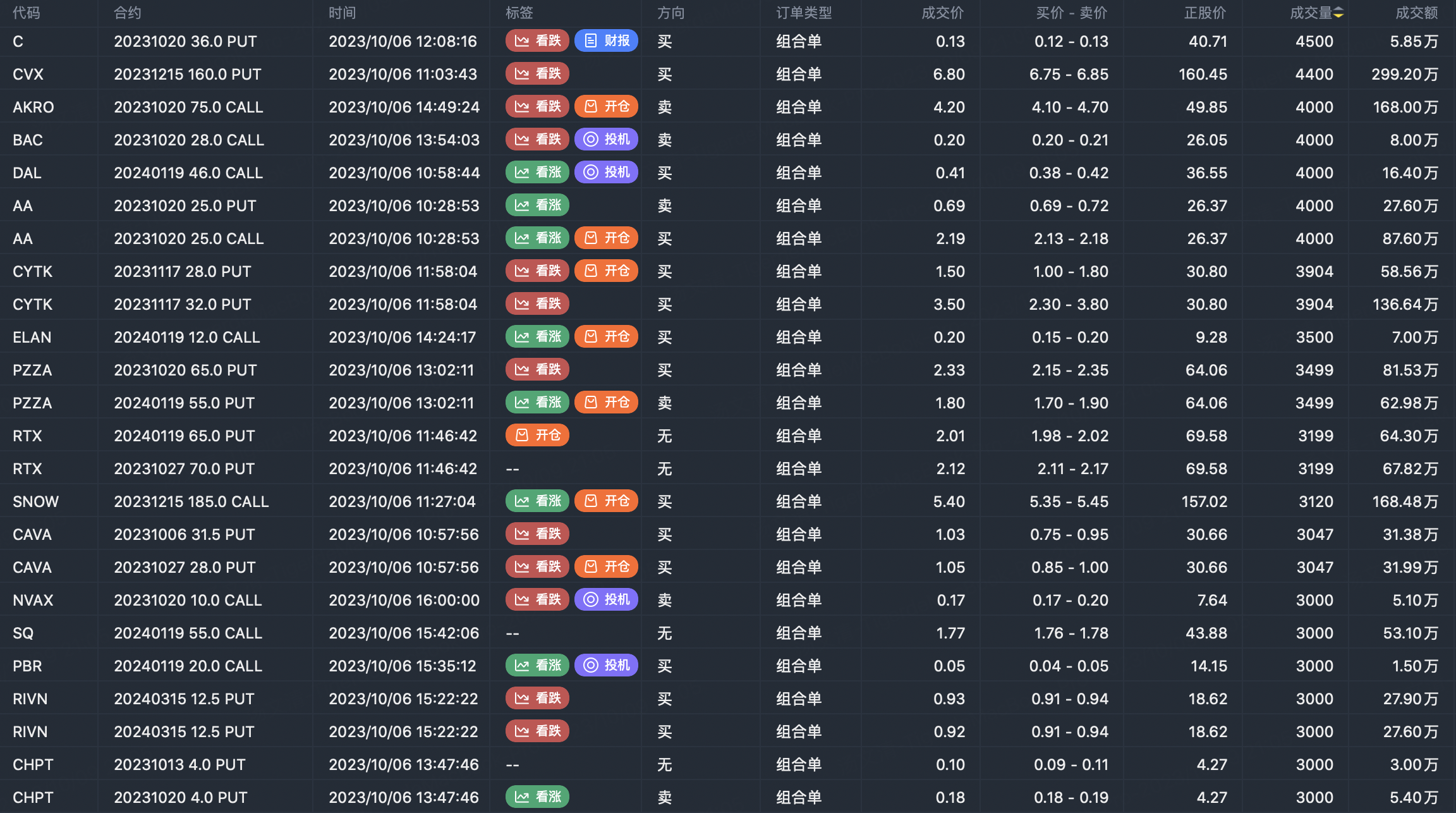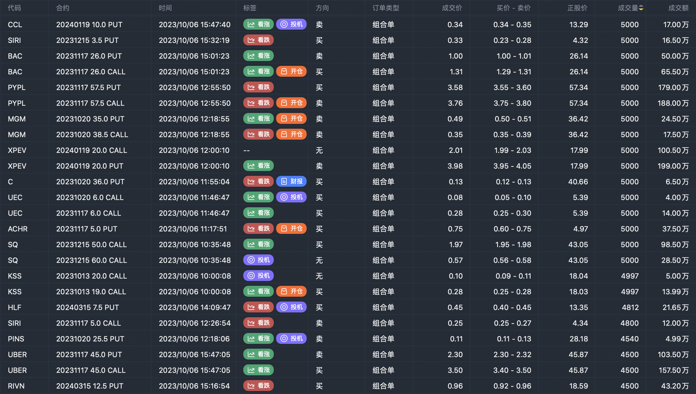 Note: This image data is from Tiger PC. This screening is a significant portfolio of options contracts in the market. Portfolio opening includes a variety of underlying trends, requiring traders to further master the basic knowledge of options for analysis and judgment.