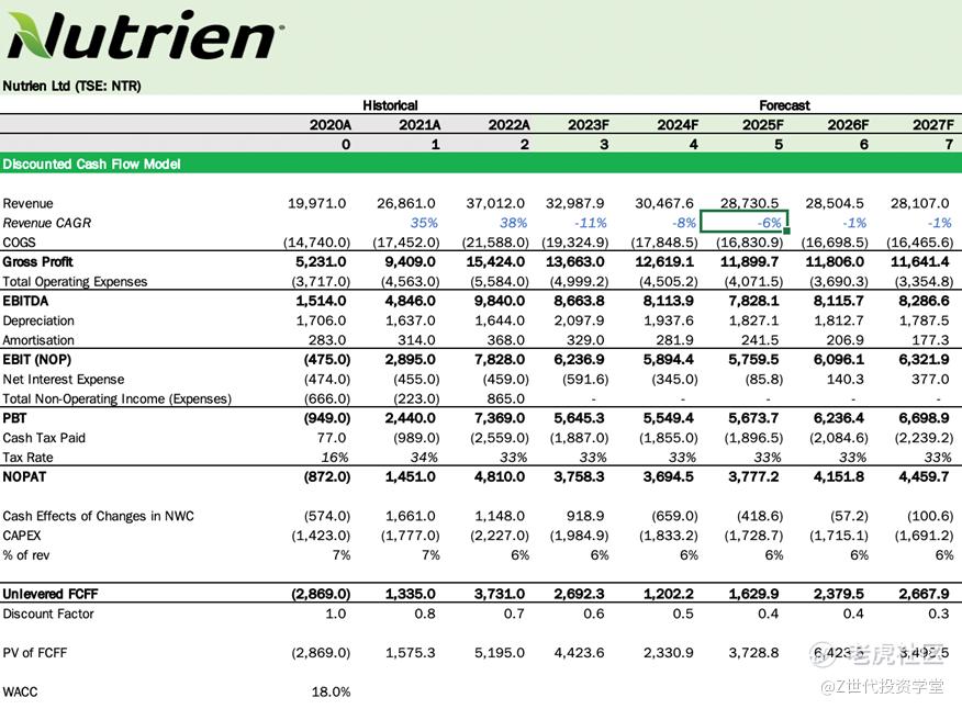 Revenue projection based on the assumption that Nutrien can keep its market share amidst the growing Agriculture industry