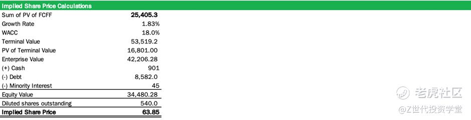 The analysis led us to the implied share price of US$ 63.85/share, which represents +8.48% of the current share price of US$ 58.87/share.