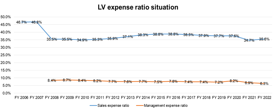 The increase in profitability was mainly driven by a decrease in expense ratios during the pandemic period, with the sales expense ratio decreasing by nearly 3 percentage points: